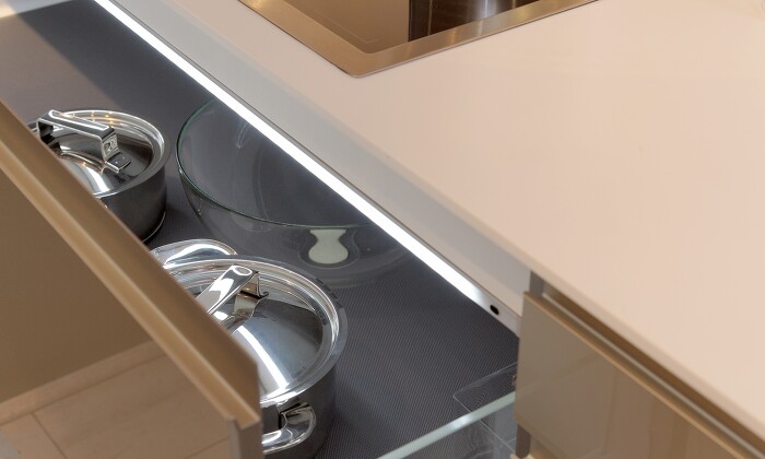 Eine Küche, die allen Anforderungen gerecht wird, benötigt auch Licht in allen Schattierungen: Zielgerichtete Spots auf die Arbeitsfläche, Innenschrankbeleuchtung für schnelles Finden, gekonnte Strahler, um architektonische Finessen zur Geltung zu bringen, Stimmungslicht für traute Abendstunden.