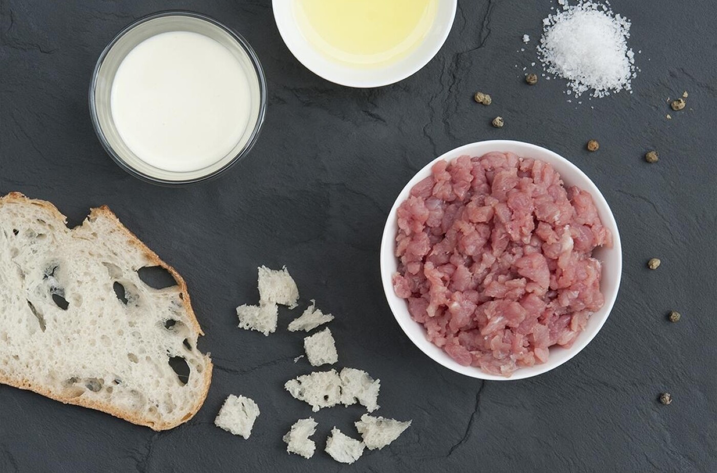 Die klassische Fleischfarce besteht aus 10 Teilen feinem, sorgfältig pariertem Fleisch, 6 Teilen Sahne, 2 Teilen Weißbrot ohne Rinde und 1 Teil Eiweiß. Das Weißbrot mit Eiweiß und etwas Sahne beträufeln und zusammen mit dem Fleisch zweimal durch den Fleischwolf drehen. Die Hälfte der Sahne einarbeiten und die andere Hälfte steif geschlagen unterheben. Gewürzt wird mit Salz und weißem Pfeffer.