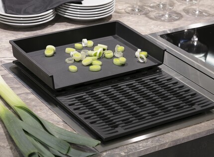 So eine wuchtige Keramikspüle, die nach vorne herausragt, ist nicht nur für Landhausküchen das Tüpfelchen auf dem i. Gerade in Schwarz macht sie in modernen Küchen so richtig was her, erst recht im starken Kontrast zu weißen Küchenfronten und weißer Arbeitsplatte.
